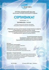 2019 - 2021: Магистр медицинских наук, НАО «Казахский
