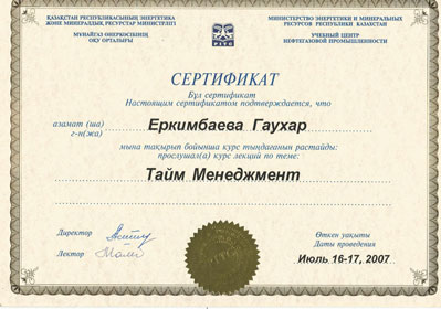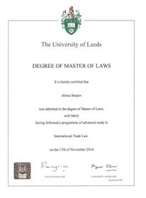 1996 — 2000: Казахская Государственная Юридическая Академия